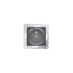 SIMON 54 Gniazdo wtyczkowe pojedyncze do wersji IP44 - bez uszczelki - klapka transparentna do ramek Nature do ramek Premium (moduł) 16A 250V, zaciski śrubowe, srebrny mat, metalizowany DGZ1BUZ.01/43A