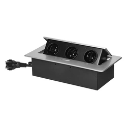 ORNO Gniazdo meblowe wpuszczane w blat z płaskim frezowanym rantem i przewodem 1,5m, 3x2P+Z, szare OR-GM-9033/G