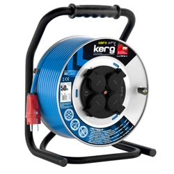 KERG Przedłużacz bębnowy 4-gniazda z uziemieniem 50 metrów, 3x2,5 H07BQ-F (poliuretan), IP44, niebieski