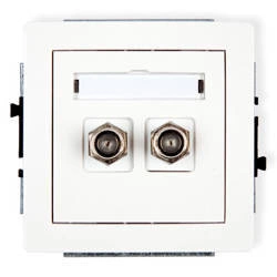 DECO Mechanizm gniazda antenowego podwójnego SAT typu F (niklowany) biały DGF-2
